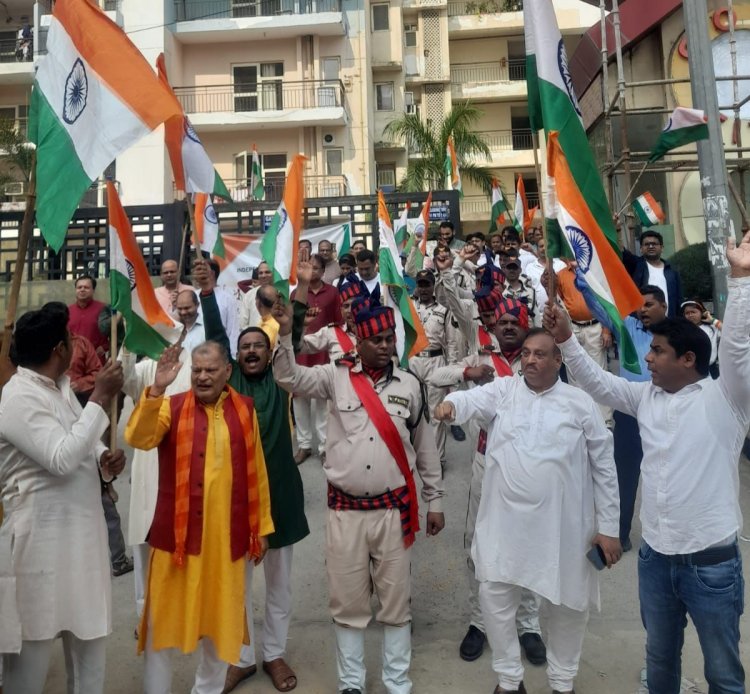 गोल्फ सिटी सोसाइटी में मनाया गया 77वां स्वतंत्रता दिवस, निकाली विशाल भगवा यात्रा