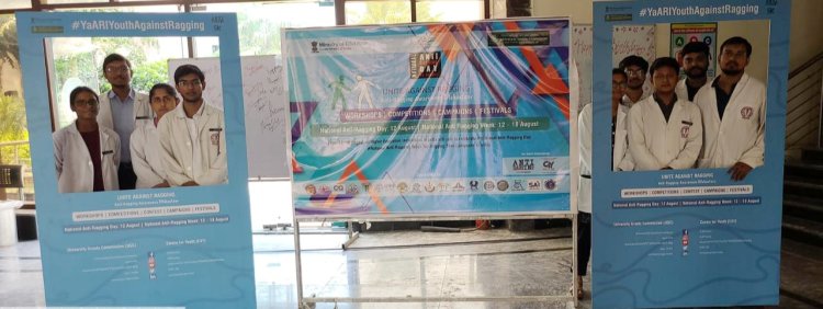The prize winners of poster competition were MBBS Batch 2022 students Rishika, Garima and Divyanshi (1st,2nd,3rd rank respectively).On 16th August, Dr Satendra Kumar, Proctor, addressed the MBBS and Nursing students to discuss various anti-ragging measures in college and campus. The guest speaker Mr Veerbhadra Singh, Sub Inspector, Thana Kasna warned the students against ragging and emphasised that ragging is a serious offence. On 17th August, a documentary movie was screened to re-emphasize the importance of fostering a ragging free college and campus environment.