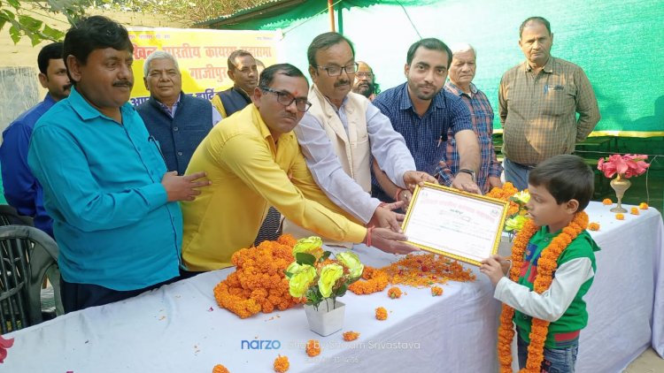 गाजीपुर अखिल भारतीय कायस्थ महासभा के तत्वावधान में नवाब गंज स्थित आर सी लाल बाल विधा मंदिर में महासभा के जिलाध्यक्ष अरुण कुमार श्रीवास्तव की अध्यक्षता में कायस्थ सम्मान समारोह का आयोजन किया गया। इस अवसर पर भगवान श्री चित्रगुप्त जी की शोभायात्रा में शामिल झांकी में भाग लेने वाले बच्चों के साथ साथ समाज के अन्य मेधावी एवं प्रतिभावान बच्चों को महासभा के जिलाध्यक्ष अरुण कुमार श्रीवास्तव एवं महामंत्री अजय कुमार श्रीवास्तव जी के द्वारा प्रशस्ति पत्र देकर सम्मानित किया गया।