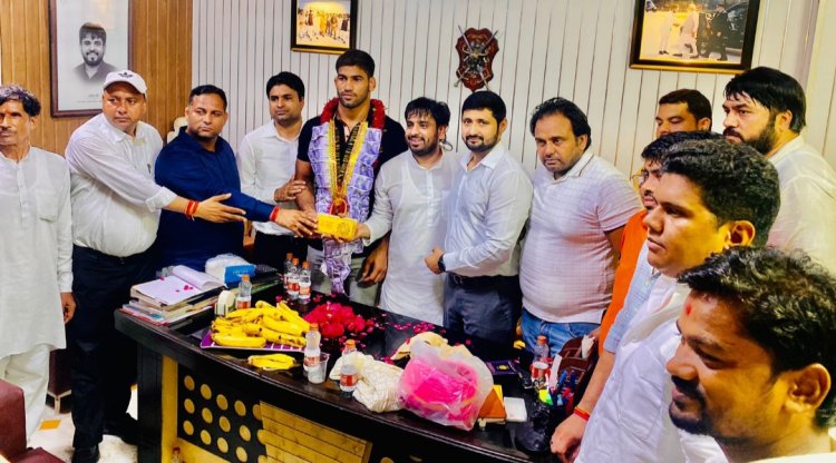 जॉर्डन में एशियाई चैंपियनशिप में स्वर्ण पदक विजेता जोंटी भाटी का भाजपा नेता अन्नू पंडित ने किया स्वागत