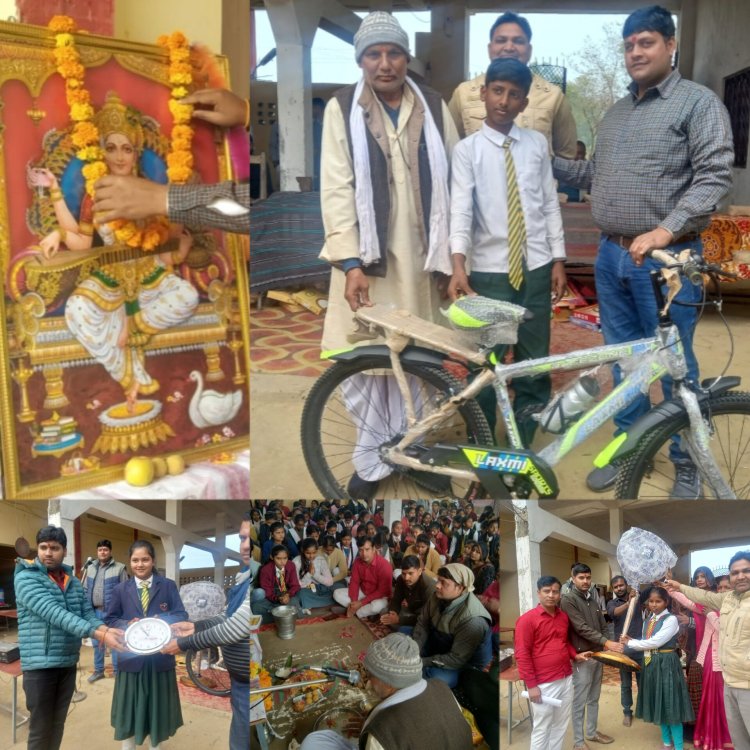 गाज़ीपुर - बिरनो क्षेत्र के सद्भावना आदर्श इंटर कॉलेज में मां सरस्वती के पूजन के अवसर पर सामान्य ज्ञान प्रतियोगिता में अव्वल छात्र और छात्राओं को पुरस्कार देकर सम्मानित किया गया।