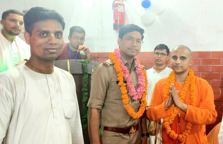 इस्कॉन दादरी प्रभारी पुण्ड्रिक विद्यानिधी प्रभुजी द्वारा कार्यक्रम में मुख्य अतिथि के रूप में श्रीमान रितेश कुमार (दादरी चौकी प्रबंधक) व श्रीमति गीता पंडित (चेयरमैन) का स्वागत किया व भगवान कृष्ण के अभिषेक में हिस्सा लिया एवं सांस्कृतिक कार्यक्रम देख बच्चों का मनोबल बढाया।