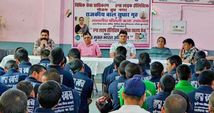 नशा मुक्ति केन्द्र "हग्स लाइफ हॉलिस्टिक" द्वारा राजकीय संप्रेक्षण ग्रह, गौतम बुध नगर में मौजूद 86 बाल अपराधियों को आज "नशा मुक्त भारत अभियान" के तहत नशे की लत से होने वाले मानसिक रोगों से अवगत कराते हुए संस्थान अध्यक्ष लवलिट पीर ने नशा न करने कि मौजूद सभी को शपथ दिलाई। लवलिट पीर ने बताया कि बाल सुधार गृह के कार्यक्रम की अध्यक्षता विधिक सेवा प्राधिरण सचिव, अपर जिला जज गौतम बुद्ध नगर ऋचा उपाध्याय ने करी। कार्यक्रम में नशा मुक्ति केन्द्र जीवन धारा के अध्यक्ष राकेश मसीह ने नशे से ग्रस्त बाल बंदियों को नशा मुक्त जीवन शैली अपनाने के गुर बताते हुए कार्यक्रम को सार्थक किया।