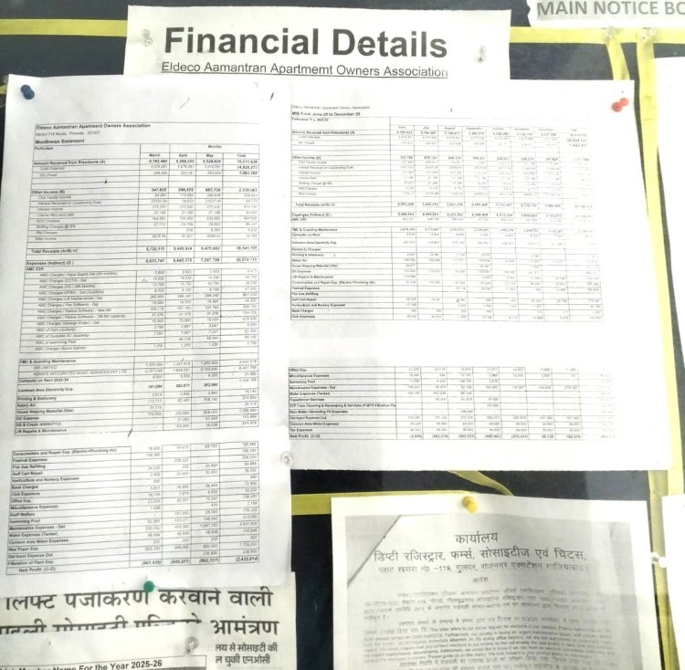 एल्डिको अमान्त्रण एओए: नोएडा की पहली सोसाइटी जिसने अपनी वित्तीय स्थिति को टॉवर नोटिस बोर्ड पर प्रदर्शित किया है