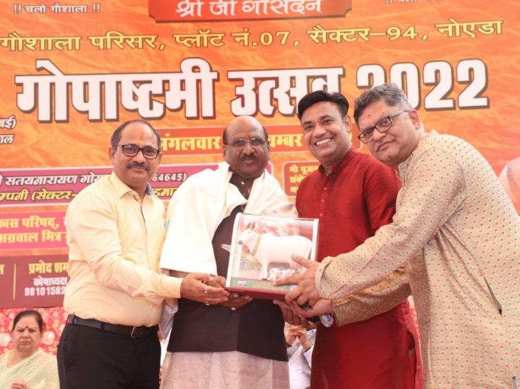 नोएडा। श्रीजी गौसदन सेक्टर-94, नोएडा में गोपाष्टमी का पर्व धूमधाम से मनाया गया। कार्यक्रम में मुख्य अतिथि गौतमबुद्ध नगर सांसद एवं पूर्व केंद्रीय मंत्री भारत सरकार डॉ. महेश शर्मा, नोएडा विधायक पंकज सिंह, पूर्व राज्य मंत्री नवाब सिंह नागर, उत्तर प्रदेश महिला आयोग अध्यक्ष बिमला बाथम और मधुसूदन दादू रहे।