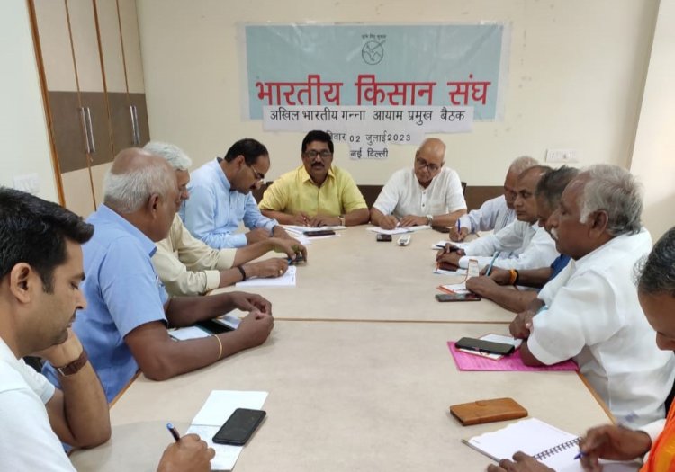नई दिल्ली। भारतीय किसान संघ की गन्ना आयाम की दो दिवसीय अखिल भारतीय बैठक भारतीय किसान संघ केन्द्रीय कार्यालय, नई दिल्ली में संपन्न हुई। यह बैठक अखिल भारतीय गन्ना आयाम प्रमुख श्री के0साई रेड्डी जी की अध्यक्षता में संपन्न हुई। मुख्य अतिथि के रूप में अखिल भारतीय महामंत्री श्री मोहिनी मोहन मिश्र जी का मार्गदर्शन प्राप्त हुआ। अखिल भारतीय गन्ना आयाम टौली सदस्य श्री श्यामवीर त्यागी जी द्वारा दीप प्रज्वलन से बैठक की शुरूआत हुई। गन्ना उत्पादन के कुल 14 राज्यों के प्रतिनिधियों की उपस्थिति रही।