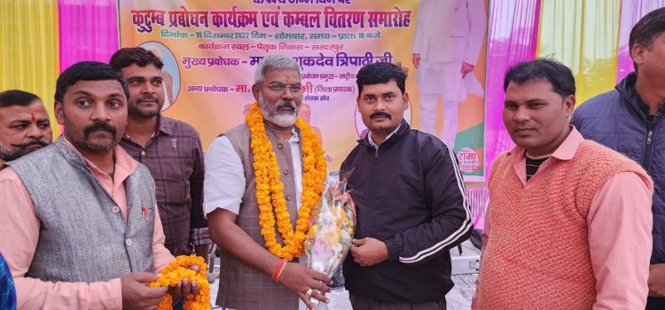 गाजीपुर बिरनो विकास खण्ड अन्तर्गत सरदरपुर के प्रधान प्रतिनिधि विजय नारायण चौहान ने सोमवार को अपना जन्मदिन अनूठे तरीके से मनाया। जहां जन्मदिन पर अक्सर लोग अच्छे आलीशान होटलों व प्रतिष्ठानों में केक काटकर मनाते हैं वहीं विजय नारायण चौहान ने इस कड़ाके की ठंड को ध्यान में रखते हुए गरीब असहाय व विधवा महिलाओं को कंबल वितरण कर व मिठाई खिलाकर अपना जन्मदिन मनाया।