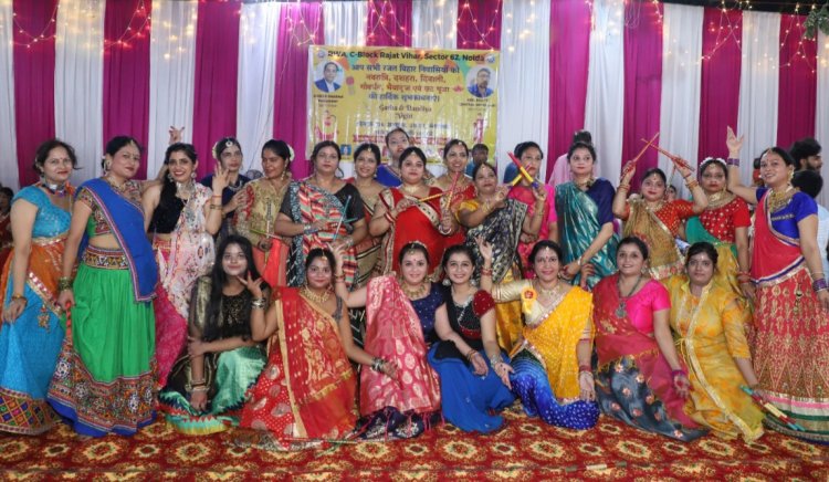 नोएडा। शारदीय नवरात्री की महानवमी की शाम को रजत विहार, सी ब्लाक, सेक्टर 62 के शिव शक्ति मंदिर प्रांगण में गरबा व डांडिया का भव्य आयोजन किया गया, जिसमें सोसाइटी की महिलाओं व बालिकाओं ने बड़े जोश और उमंग के साथ भाग लिया।