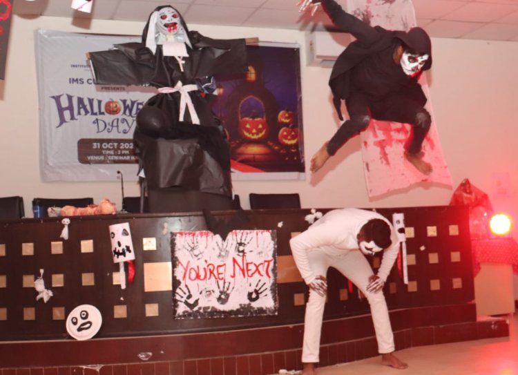 नोएडा। इंस्टीट्यूट ऑफ मैनेजमेंट स्टडीज (आईएमएस) नोएडा में हैलोवीन डे मनाया गया। मंगलवार को कार्यक्रम के दौरान छात्रों ने भूत, चुड़ैल एवं जादूगर बनकर दर्शकों को डराया। वहीं सेक्टर 62 स्थित संस्थान परिसर में आयोजित कार्यक्रम के दौरान छात्रों के लिए हैलोवीन की थीम पर आधारित कॉस्ट्यूम, मेकअप, फोटोग्राफी एवं फिल्म स्क्रीनिंग प्रतिस्पर्धा भी रखी गई।