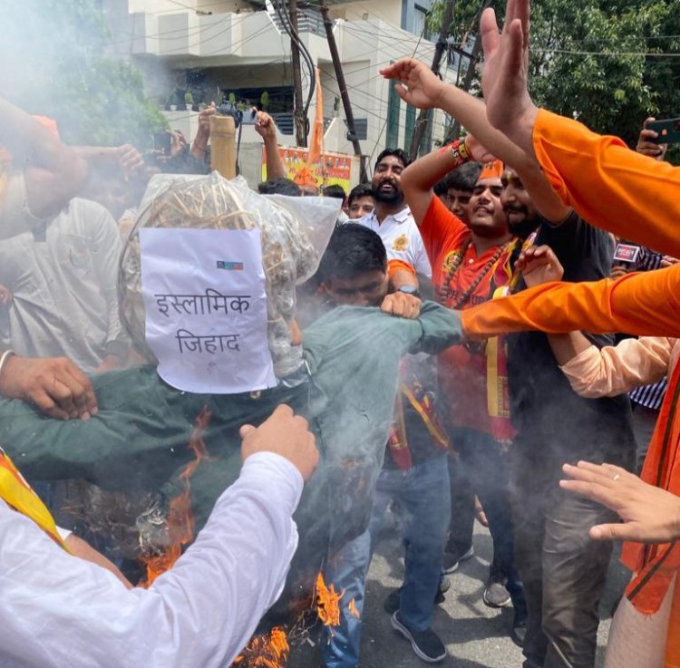 नूंह हिंसा पर हिन्दू संगठन आगबबूला जेहादियों का पुतला फूंका, कहा- मेवात को नहीं बनने देंगे पाकिस्तान