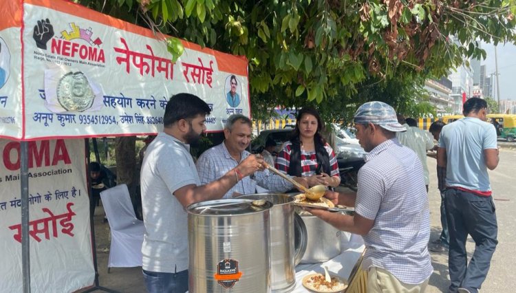 ग्रेटर नोएडा वेस्ट सामाजिक संस्था नेफोमा द्वारा आज गौर सिटी चौक पर नेफोमा रसोई मैं लगभग 350 लोगों ने भरपेट भोजन किया आज नेफोमा रसोई द्वारा छोले चावल वितरण किए गए व पीने के लिए पानी की व्यवस्था की गई , नेफोमा वॉलिंटियर द्वारा साफ सफाई का पूरा ध्यान रखा गया सभी इस्तेमाल की गई प्लेटों को गार्बेज बैग में भरकर कूड़े दान में डाला गया जिससे कि वहां गौर सिटी चौक पर गंदगी ना हो और वातावरण स्वच्छ हो।