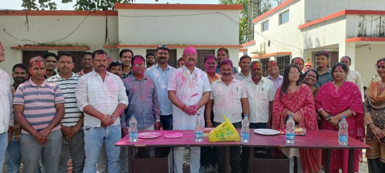 बिरनो ब्लॉक प्रमुख राजन सिंह ने जनप्रतिनिधियों और कर्मचारीयों के साथ जमकर उड़ाया गुलाल