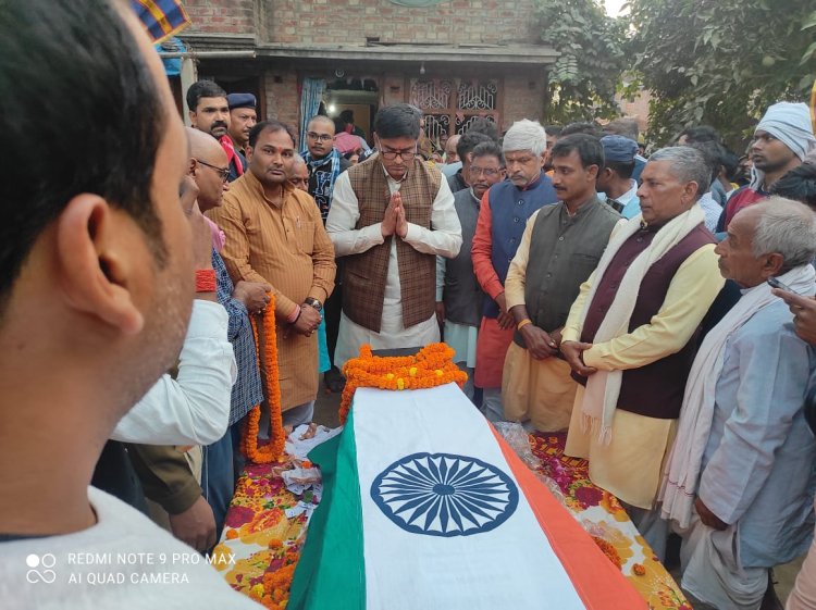 तथा माता पिता बेसुध है। शव के घर पहुचने पर भाजपा जिलाध्यक्ष भानुप्रताप सिंह,पुर्व जिलाध्यक्ष कृष्ण बिहारी राय,महामंत्री ओमप्रकाश राय,प्रवीण सिंह,संकठा प्रसाद मिश्रा,अच्छे लाल गुप्ता,मनोज सिंह,अवधेश राजभर,राकेश यादव,प्रमोद राय,विवेकानंद पांडेय आदी ने पार्थिव शरीर पर पुष्पांजलि अर्पित कर संवेदना श्रद्धांजलि दी और जवान के परिवार के प्रति अपनी संवेदना प्रकट की ।
