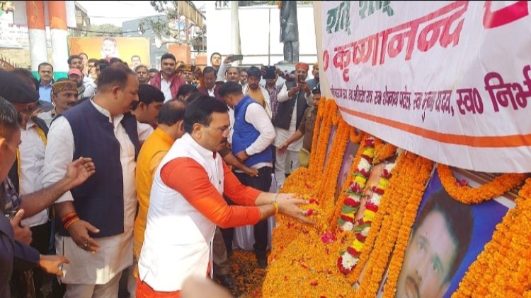 कृष्णानंद राय के शहादत दिवस पर पहुंचे केंद्रीय मंत्री गिरिराज सिंह और बृजेश सिंह