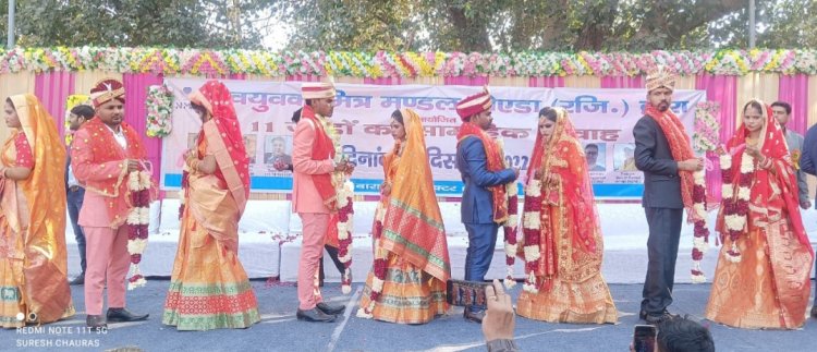 नोएडा। कहते हैं, बेटी का विवाह किसी भी अभिभावक के जीवन की सबसे बड़ी जिम्मेदारी होती है। ऐसे में अगर बेटी गरीब परिवार से ताल्लुक रखती हो तो माता-पिता के लिए यह जिम्मेदारी पहाड़ उठाने जैसे होती है। लेकिन नोएडा के नवयुवक मित्र मंडल ने ऐसे गरीब माता-पिता की बेटियों की शादी का जिम्मा अपने कंधों पर उठाया और धूमधाम से 11 जोड़ों का विवाह धार्मिक रीति - रिवाज के साथ संपन्न कराया।