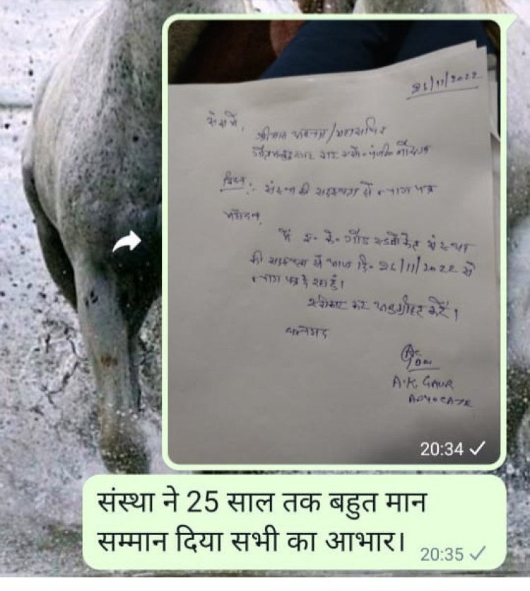 मित्रा शर्मा ने बताया कि मैं संस्था से व्यक्तिगत कारणों से अपना इस्तीफा दे रहा हूं।