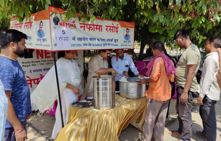 नेफोमा अध्यक्ष अन्नू खान ने बताया जरूरमन्दों के लिए पहले भोजन नेफोमा ऑफिस अपनी देखरेख में बनबाया जाता है उसके बाद गौरसिटी चौक पर वितरण किया जाता है, साफ सफाई का विशेष ध्यान रखा जाता है
