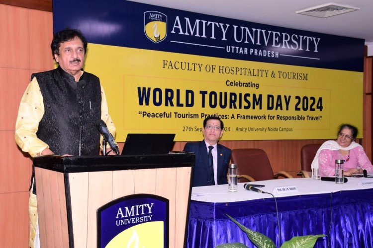 विश्व पर्यटन दिवस 2024 पर एमिटी विश्वविद्यालय के फैकल्टी ऑफ हॉस्पिटैलिटी एंड टूरिस्म द्वारा ‘‘शांतीपूर्ण पर्यटन अभ्यास - जिम्मेदार यात्रा के लिए एक रूपरेखा’’ पर चर्चा सत्र का आयोजन भी किया गया। इस सत्र में टोटल सिनर्जी कंस्लटिंग प्राइवेट लिमिटेड के वरिष्ठ उपाध्यक्ष डा जी जी सक्सेना, पुरस्कार विजेता एकल महिला यात्री डा कायनात काज़ी, इंडिया फूड टूरिस्म ऑरगनाइजेशन की अध्यक्ष डा (शेफ) राजीव गोयल, पर्यटन मंत्रालय के पूर्व सचिव श्री विनोद जुत्सी, एमिटी विश्वविद्यालय की वाइस चांसलर डा बलविंदर शुक्ला और फैकल्टी ऑफ हॉस्पिटैलिटी एंड टूरिस्म के डीन डा एम सजनानी ने अपने विचार रखे।