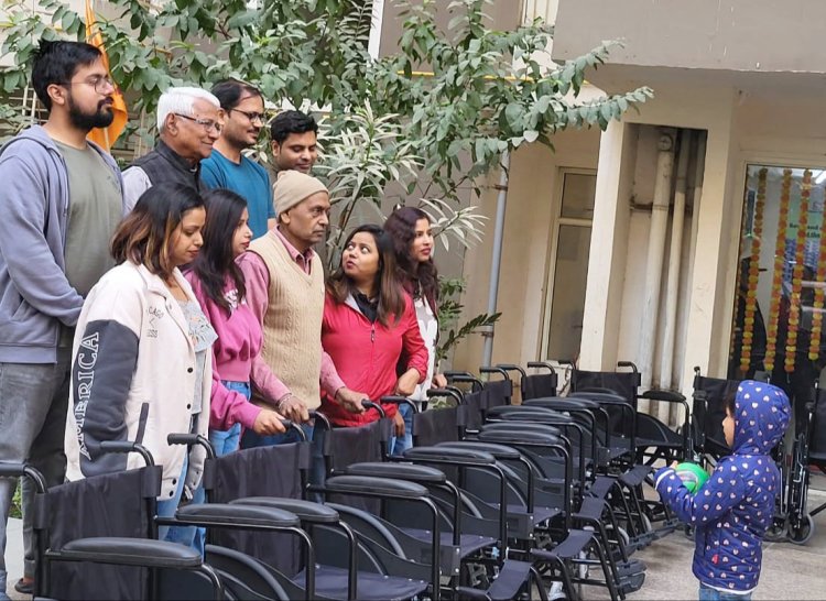 इकोविलेज-1 K-1 टावर निवासी पंचम वर्मा ने 12 व्हील चेयर सोसाइटी के सेवा हेतु सुपुर्द किया