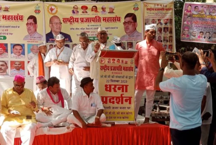 राष्ट्रीय प्रजापति महासंघ के तत्वाधान पिछड़े वर्ग की जातियों एवं प्रजापति समाज की सहयोगी संस्थाओं के द्वारा पिछड़े वर्ग की प्रमुख मांगों को लेकर दिल्ली जंतर मंतर पर धरना प्रदर्शन, जनसभा का आयोजन किया गया। कार्यक्रम की अध्यक्षता सुरेंद्र कुमार प्रजापति राष्ट्रीय अध्यक्ष राष्ट्रीय प्रजापति महासंघ, संचालन राजवीर सिंह प्रजापति राष्ट्रीय मुख्य महासचिव राष्ट्रीय प्रजापति महासंघ ने किया।