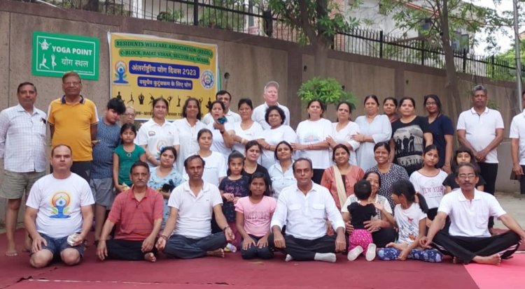 नोएडा। गतवर्ष की भांति इस वर्ष भी आरडब्ल्यूए, रजत विहार - सी ब्लॉक, सेक्टर 62 द्वारा "अंतरराष्ट्रीय योग दिवस-2023" बहुत जोश के साथ मनाया गया। रजत विहार निवासी माताएं-बहनें, बड़े बुजुर्ग और छोटे-छोटे बच्चे सुबह 5.30 बजे योगा स्थल पर पहुँच गए, आज के दिन योग करने के लिए सबका उत्साह देखते ही बनता था।रजत विहार का योग केंद्र पिछले कई वर्षो से चलाया जा रहा है, योग दिवस के मौके पर नित्य योग करने वालों ने उनको हुए स्वास्थ्य लाभ के बारे में बताया। इस मौके पर अध्यक्ष राजीव शर्मा द्वारा योग पर प्रश्नोत्तरी का कार्यक्रम कराया जिसमें बड़ों और बच्चों ने पुरूस्कार जीते।