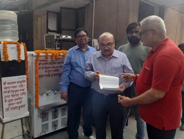नोएडा। सेक्टर 94 स्थित पोस्टमॉर्टम हाउस में आने वाले लोगों को भीषण गर्मी में पीने के लिए ठंडा, साफ पानी मिले इसके लिए श्री चित्रगुप्त सभा ट्रस्ट नोएडा और श्री नारायण सांस्कृतिक चेतना न्यास के मुख्य न्यासी राजन श्रीवास्तव ने परिसर में वाटर कूलर लगवाया है। शुक्रवार को मुख्य चिकित्सा अधिकारी (सीएमओ) डॉ. सुनील कुमार शर्मा, अपर मुख्य चिकित्सा अधिकारी डॉ. जैस लाल ने वाटर कूलर का उद्घाटन किया और संस्था के काम की सराहना की। संस्था का सहयोग पहले भी मिलता रहा है उनके द्वारा परिसर में सबमर्सिबल लगवाया गया था। इस बार वाटर कूलर लगवाया गया है। जिससे लोगों को ठंडा पानी मिलेगा। उन्हें पानी के लिए भटकना नहीं पड़ेगा। कर्मचारियों को वाटर कूलर के समुचित रखरखाव के निर्देश दिए हैं।