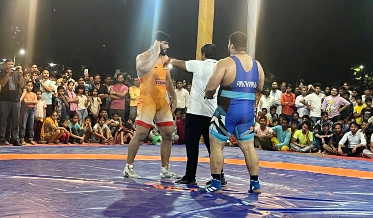 80 किलो से अधिक के पहलवानों की ऋषिपाल केसरी टाइटल कुश्ती हूई
