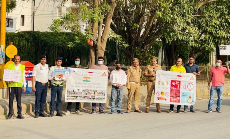 नोएडा। 7एक्स वेलफेयर टीम ने ग़ाज़ियाबाद ट्रैफिक पुलिस के साथ मिलकर और ट्रैफिक वालंटियर्स के सहयोग से जयपुरिया मॉल के नजदीक वसुंधरा इंदिरापुरम रोड पर सड़क सुरक्षा जीवन रक्षा अभियान चलाया, जिसमें लोगो को यातयात नियम के प्रति जागरूक किया गया।