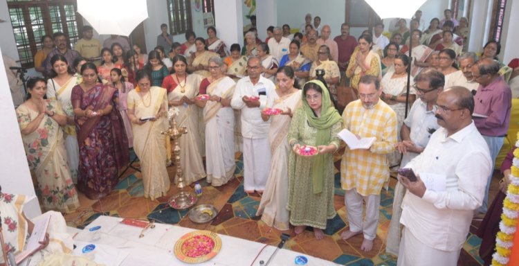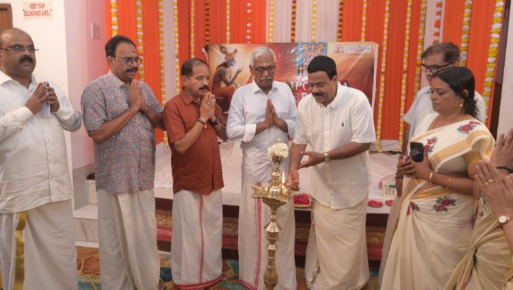 We had the good fortune of inviting the Melshaanti (Head Priest) lighting the devotional lamp with the sacred fire, to bless the commencement of this auspicious occasion. The proceedings started with lighting of the traditional lamp by invited dignitaries – Dr. Ramesh Nambiar - President UGT, MV Haridas Vice-President Venugopal - Secretary along with functionaries present from Gita Parivar. Also present was Shri Babu Panicker, Chairman of Panicker's Travels, as our esteemed guest .