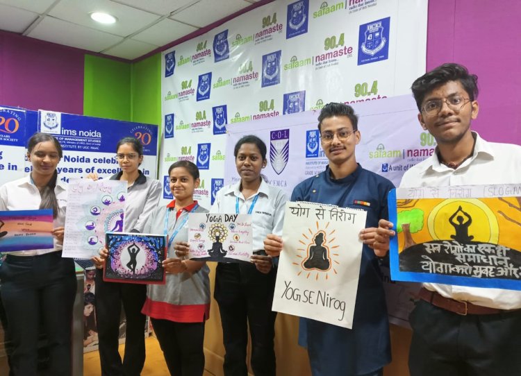नोएडा। आईएमएस नोएडा के सामुदायिक रेडियो सलाम नमस्ते में योग ने निरोग कार्यक्रम का आयोजन हुआ। 15 जून से 21 जून तक आयोजित इस सप्ताहिक कार्यक्रम में स्टोरी टेलिंग, पोस्टर मेकिंग, स्लोगन लेखन, रेडियो वार्ता, योगा क्विज एवं योग जागरूकता कार्यक्रम का आयोजन हुआ। वहीं बुधवार को संस्थान परिसर में योग प्रशिक्षण का आयोजन किया जाएगा।
