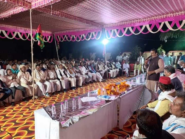 वही इस मौके पर क्षेत्र के विधायक डॉ वीरेंद्र यादव ने संबोधित करते हुए कहा कि लोकसभा का चुनाव एकमात्र चुनाव नहीं यह देश का भविष्य एक बार फिर से लुटेरों से बचने का चुनाव है अगर 2024 लोकसभा में गलती से भाजपा का विजय होगा तो फिर दोबारा चुनाव नहीं होगा यह शासक के रूप में कार्य करेंगे बेरोजगार किसान गरीब दलित पिछड़ा अल्पसंख्यक को एक नई नीति नए कानून के तहत पीछे-पीछे चलाने का काम करेंगे अपने आदेश से आपको झुकाने का काम करेंगे वक्त है रक्त में उबाल लाओ जिस तरह से आपने जंगीपुर में हमारे पिता और माता जी का सम्मान किया मुझे आपने दो बार विधानसभा में भेजने का काम किया आप सभी से निवेदन है आप प्रबुद्ध लोग हैं दिन में 2 घंटा देश बचाने की नीति पर कम करें जनपद सांसद अफजाल अंसारी को चुनेगा और देश में प्रधानमंत्री हमारे आदरणीय अखिलेश यादव चुनेंगे इसलिए आपका साथ आपका विश्वास ही आपको मजबूत बनाएगा। इस मौके पर सपा जिला अध्यक्ष गोपाल यादव ने कार्यक्रम को संबोधित करते हुए कहा कि हमारा इरादा नेक है हमारा चुनाव चिन्ह एक है हमारे नेता एक है इसलिए आप सभी को एक होकर सपा को जिताना है।