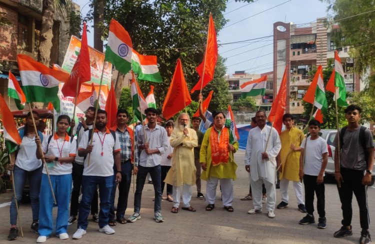 गाजियाबाद। केन्द्रीय आर्य युवक परिषद् एवं आर्य समाज समर्पण शोध संस्थान राजेन्द्र नगर के संयुक्त तत्वावधान में महर्षि दयानन्द सरस्वती जी की 200 वीं जयंती के अवसर पर श्रावणी पर्व के उपलक्ष्य में युवा संस्कार अभियान के अंतर्गत साहिबाबाद के 4/42,सेक्टर 5,राजेन्द्र नगर में आजादी के दीवानों को श्रद्धा सुमन अर्पित करने हेतु तिरंगा यात्रा का आयोजन किया गया जोकि अमूल डेयरी राजेन्द्र से चलकर मुख्य मार्गों पंचशील पार्क,श्याम पार्क,जिंदल मार्केट,शांति चोक,प्रेरणा पार्क एवं बुद्धा पार्क से होती हुई आर्य समाज समर्पण शोध संस्थान में भारत माता की जय,वंदे मातरम् के नारे लगाते हुए तथा देश भक्ति के गीत गाते हुए पहुंचे।तिरंगा यात्रा का मार्ग में कई स्थानों पर भव्य स्वागत किया गया।