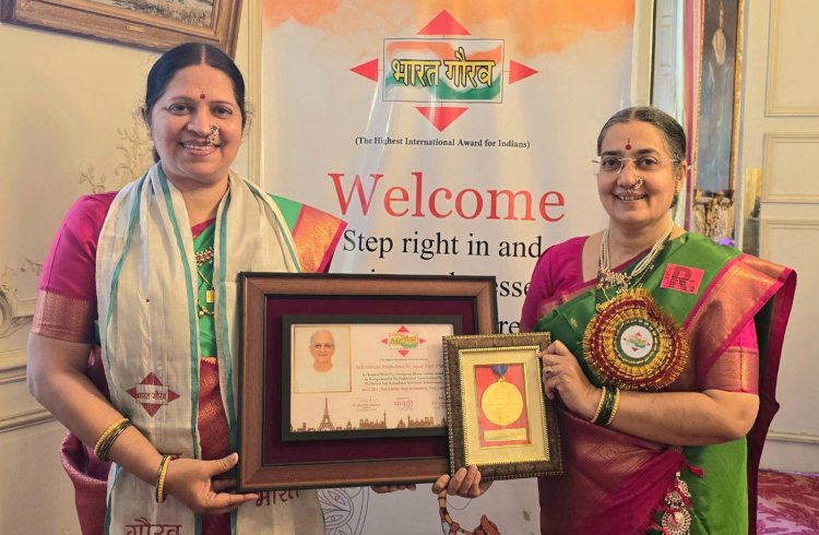 पेरिस (फ्रान्स) - अखिल मानवजाति के कल्याण के लिए निरंतर प्रयासरत, साधना से संबंधित दिशादर्शन कर संपूर्ण संसार के साधकों का जीवन आनंदमय बनानेवाले, विज्ञानयुग में सरल भाषा में अध्यात्म का प्रसार कर समाज का दिशादर्शन करनेवाले सनातन संस्था के संस्थापक सच्चिदानंद परब्रह्म डॉ. जयंत आठवलेजी को 5 जून 2024 को फ्रान्स के सीनेट में (संसद में) ‘भारत गौरव पुरस्कार’ से सम्मानित किया गया ।