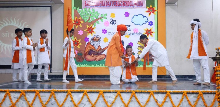 नोएडा। सेक्टर 56 स्थित सरला चोपड़ा डीएवी स्कूल नोएडा ने इस सप्ताह के अंतिम दिन पूरे हर्ष और उत्साह के साथ वेद सप्ताह मनाया। कार्यक्रम की शुरुआत ओम ध्वनि के साथ हुई, बच्चों ने स्कूल के अध्यक्ष डॉ एन के ओबेरॉय और स्कूल प्रबंधक श्रीमती चित्रा नाकरा, स्कूल की प्रिंसिपल मैम श्रीमती का स्वागत किया।