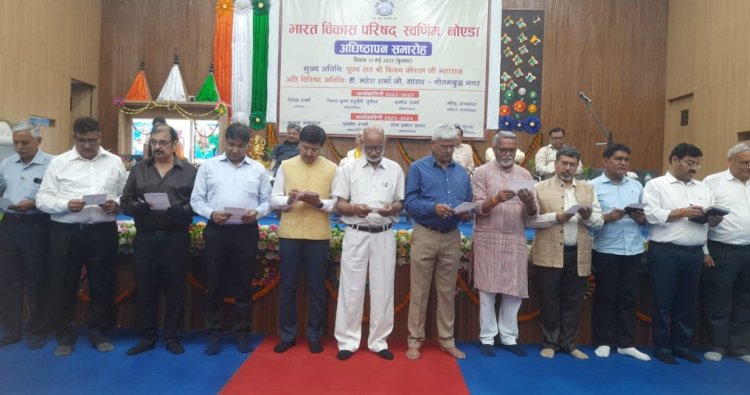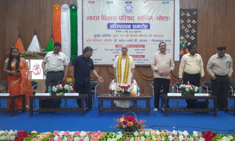 नोएडा। भारत भारत विकास परिषद "स्वर्णिम", नोएडा का अधिष्ठापन समारोह भाउराव देवरस सरस्वती विद्या मंदिर सेक्टर 12 नोएडा में धूमधाम से संपन्न हुआ! कार्यक्रम की शुरुआत वन्देमातरम एवं समाप्ति राष्ट्रीय गान के साथ हुई! कार्यक्रम में पूरे नोएडा के सभी वर्गों के लोगों ने हिस्सा लिया। नई कार्यकारिणी में अजय अग्रवाल अध्यक्ष, प्रमोद शर्मा महासचिव, ओ.पी. बंसल कोषाध्यक्ष एवं स्मृति गुप्ता को महिला संयोजिका के रूप में वर्ष 2023 2024 के लिए चुना गया, कार्यक्रम की अध्यक्षता श्री अजय अग्रवाल जी ने की।