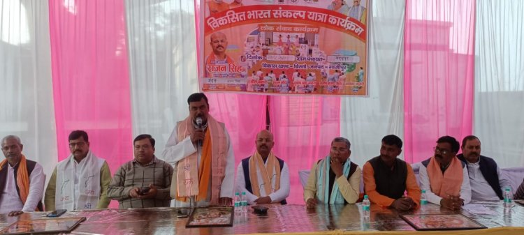 लाभान्वित किया गया। देश के यशस्वी प्रधानमंत्री नरेंद्र मोदी के 2047 तक भारत राष्ट्र को आत्मनिर्भर और विकसित राष्ट्र बनाने, देश की समृद्ध विरासत पर गर्व करने, भारत की एकता को सुदृढ़ करने हेतु दिए गए मंत्र का संकल्प लिया गया। विशिष्ट अतिथि वरिष्ट भाजपा नेता कुंवर रमेश सिंह पप्पू ने केंद्र सरकार एवं उत्तर प्रदेश सरकार की विभिन्न योजनाओं पर प्रकाश डाला। इस मौके पर मोदी की गारंटी की फिल्म दिखाया गया। इस अवसर पर अभिमन्यु सिंह मन्नू,सचिंद्रनाथ सिंह, गुड्डू गुप्ता ,विनोद गुप्ता , अनिल राजभर,अमित सिंह, विनोद पटेल ,गुड्डू राजभर ,कृषि वैज्ञानिक धर्मेंद्र सिंह, राकेश यादव, अभिमन्यु सिंह , अखिलेश सिंह मौजूद रहे कार्यक्रम की अध्यक्षता भाजपा नेता संकठा मिश्रा और संचालन पुर्व प्रधान आकाश राजभर ने किया।