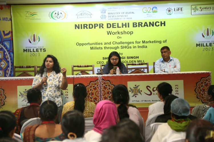 इस अवसर पर प्राचीन स्वर्ण मिल (इंसिएंट गोल्डन मिल) की सीईओ शुभांगी सिंह ने देशभर के सभी राज्यों के महिला समूहों को मिलेट्स की उपयोगिता के विषय में जानकारी दी। उन्होंने बताया कि आज के इस दौर में मोटे अनाज की मार्केटिंग में कैसे अवसर और चुनौतिया हैं। हमें किस तरह इन चुनौतियों का सामना करते हुए श्री अन्न यानि मोटे अनाज का प्रचार-प्रसार करते हुए लोगों तक इसकी मजबूत पकड़ बनानी है। उन्होंने कहा कि धीरे-धीरे हम अपनी प्राचीन संस्कृति की ओर लौट रहे हैं। यह देश के लिए गौरव की बात है। इस अवसर पर एनआईआरडीपीआर की दिल्ली ब्रांच प्रभारी डॉ. रुचिरा भट्टाचार्य ने बताया कि आज भारत की संस्कृति को दूसरे देश अपना रहे हैं। चाहे योगा की बात हो या फिर मौटे अनाज को अपनाने की बात हो हमारे देश की अपनी अलग पहचान है।