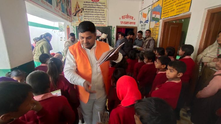 युवा समाजसेवी ने शादी की सालगिरह पर प्राथमिक विद्यालय में वितरण किया पुस्तक