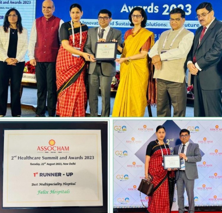 फेलिक्स हॉस्पिटल, स्वास्थ्य सेवा में एक जाना माना नाम बन चुका है , भारत के एसोसिएटेड चैंबर्स ऑफ कॉमर्स एंड इंडस्ट्री, एसोचैम द्वारा आयोजित प्रतिष्ठित दूसरे हेल्थकेयर शिखर सम्मेलन पुरस्कारों में फेलिक्स अस्पताल ने अपना नाम अंकित किया है। इसमें 100 से अधिक अस्पतालों ने भागीदारी ली और फेलिक्स अग्रणी रहा | इसकी प्रक्रिया में एसोचैम ने देश के विभिन्न अस्पतालों को अनेकों मापदंडों पर परखा था | जिसमें पहले अस्पतालों की स्क्रीनिंग की गयी, उनके बाद विभिन्न मापदंडों (पेशेंट रेटिंग, स्वास्थ्य सुविधाएँ, साफ़ सफाई एवं पेशेंट ही सर्वोपरि है की भावना) के आधार पर शॉर्टलिस्ट करके अस्पतालों को रैंकिंग दी गयी।