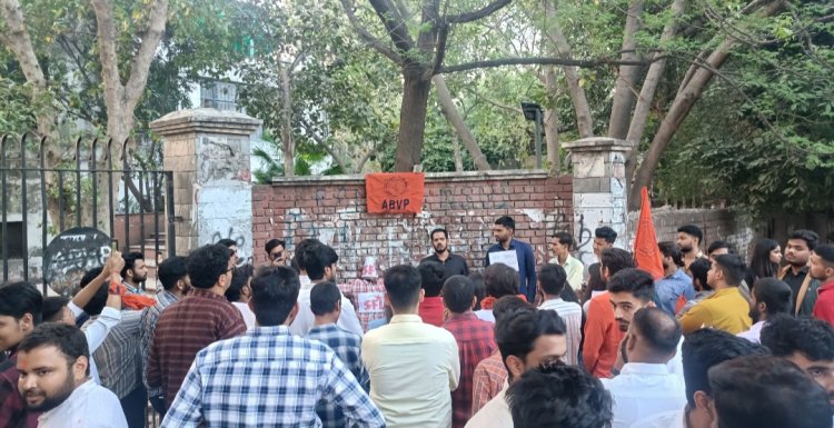 दिल्ली विश्वविद्यालय में एसएफआई का पुतला दहन कर एबीवीपी ने किया विरोध प्रदर्शन
