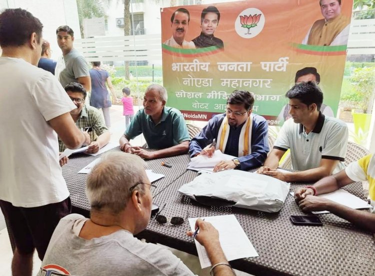 नोएडा। भाजपा के सोशल मीडिया विभाग ने दो दिवसीय वोटर आईडी कैंप का आयोजन किया। जिलाध्यक्ष मनोज गुप्ता के निर्देशन में व सोशल मीडिया के जिला संयोजक शिवांश श्रीवास्तव 'सरजी' के नेतृत्व में सिविटेक समप्रीति से 77 व आम्रपाली प्रिंली एस्टेट से 76 में वोटर आईडी कैंप का आयोजन किया गया जिसमे लगभग 300 नागरिकों ने अपने फॉर्म भरे।