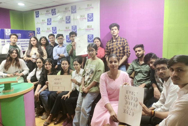 नोएडा। आईएमएस नोएडा के सामुदायिक रेडियो सलाम नमस्ते में रक्तदान जागरूकता कार्यक्रम का आयोजन हुआ। बुधवार को सेक्टर 62 स्थित संस्थान परिसर में रेडियो के माध्यम से युवाओं को रक्तदान के लिए प्रेरित किया गया। कार्यक्रम के दौरान रेडियो परिचर्चा से रक्तदान के महत्व, मिथक एवं आवश्यकताओं पर छात्रों ने अपने विचार प्रकट किए।