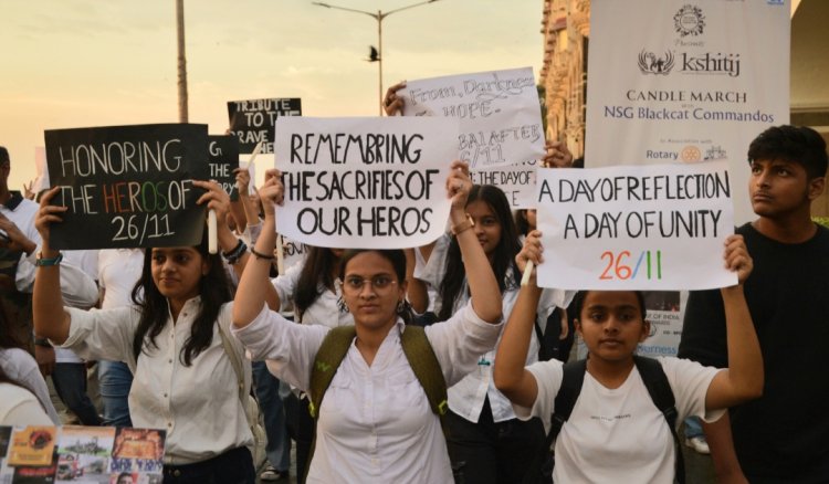 26/11 हमले में शहीद एनएसजी कमांडो के सम्मान में गेटवे ऑफ इंडिया पर निकला कैंडल मार्च