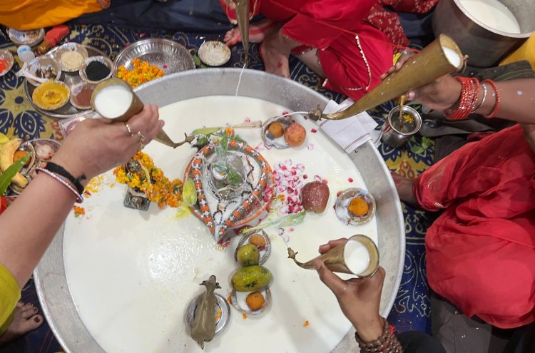 सावन माह को लेकर दिव्यांग बच्चों ने किया भगवान शिव का रुद्राभिषेक