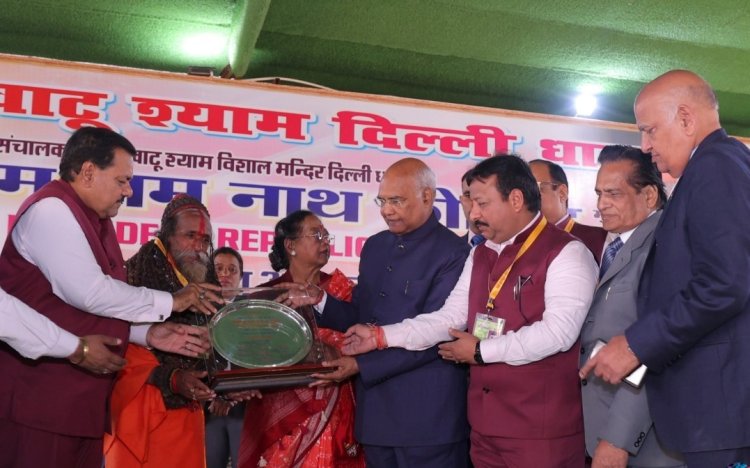 पूर्व राष्ट्रपति राम नाथ कोविन्द ने श्री खाटू श्याम विशाल मंदिर दिल्ली धाम में गोवर्धन धाम का अनावरण किया