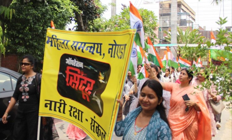 नोएडा। महिला समन्वय द्वारा सेक्टर-12 में 'ऑपरेशन सिंदूर' अभियान के तहत एक भव्य तिरंगा यात्रा का आयोजन किया गया। इस आयोजन में 450 से अधिक महिलाओं और युवतियों ने पूरे उत्साह और गर्व के साथ भाग लिया। हाथों में तिरंगा और हृदय में देशभक्ति की भावना लिए महिलाओं ने जब जयघोष के साथ पदयात्रा की, तो नोएडा की हवा देशप्रेम से भर उठी।