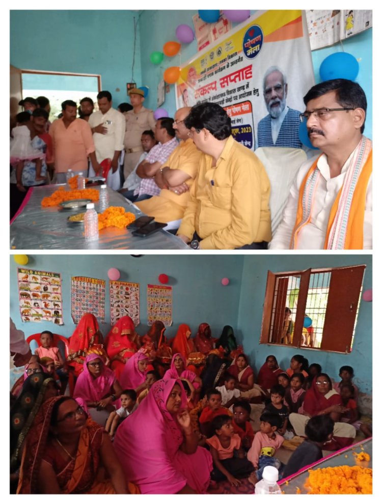 गाजीपुर - भारत सरकार के नीति आयोग के द्वारा दिनांक 30 सितम्बर 2023 को माननीय प्रधानमंत्री नरेन्द्र मोदी जी के द्वारा नई दिल्ली में आकांक्षात्मक विकास खण्ड़ों में सबकी आकाक्षाएॅ सबका विकास थीम पर आधारित 03 से 09 अक्टूबर 2023 तक निर्धारित संकल्प सप्ताह के अन्तर्गत दिये गये निर्देश के क्रम में जिलाधिकारी आर्यका अखौरी के निर्देश पर आंकाक्षात्मक विकास खण्ड बिरनों, बाराचवर, रेवतीपुर, देवकली, मरदह, सादात के अलावा समस्त परियोजना में बाल विकास योजना के अन्तर्गत सुपोषित परिवार आधारित पोषण मेला का आयोजन किया गया, जिसमें बच्चों एवं गर्भवती महिलाओं का वजन एवं लम्बाई के साथ पोषण अभियान के अन्तर्गत गोदभराई एवं अन्नप्रासन कार्यक्रम का आयोजन प्रत्येक केन्द्र पर आयोजित किया गया। इस कार्यक्रम में पोषण चौपाल लगाते हुये लाभार्थी समूह को बाल संतुलित आहार पर चर्चा करते हुये अन्न आधारित भोजन पर जोर देने की हिदायत दी गई। इसके अलवा पोषण वाटिका का महत्व एवं किचन गार्डेन स्थापना पर चर्चा किया गया तथा इसे स्थापना हेतु जागरुक किया गया। उक्त पोषण मेला में सितम्बर