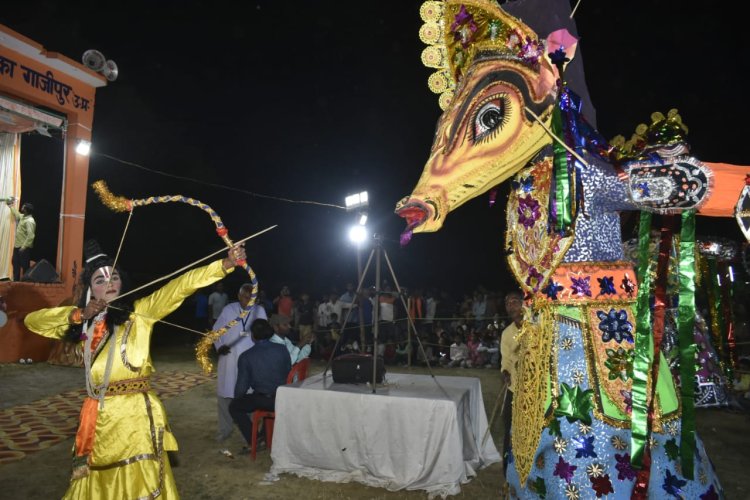 गाजीपुर। अति प्राचीन रामलीला कमेटी हरिशंकरी के तत्वाधान में वन्दे वाणी विनायकौ आदर्श श्रीराम लीला मण्डली के द्वारा स्थानीय लंका के मैदान में लीला के 11वें दिनांक 20 अक्टूबर शाम 7ः00 बजेे सुपर्णखा नाक कटईया, खर दूषण वध एवं सीताहरण लीला का मंचन किया गया। लीला की शुरूआत कमेटी केे मंत्री ओमप्रकाश तिवारी, प्रबन्धक विरेश राम वर्मा, उपप्रबन्धक मयंक तिवारी, कोषाध्यक्ष रोहित अग्रवाल, श्रीराम की आरती करने के बाद लीला का शुभारम्भ किया गया। लीला के दौरान प्रभु श्रीराम चन्द्र अपनी भार्या सीता व भाई लक्ष्मण के साथ चित्रकूट से चलकर पंचवटी में पहुचते है, वहां पर्णकुटी बनाकर निवास करने लगते है अचानक लंका पति रावण की बहन शूपर्णखा भ्रमण करते हुए पंचवटी पहुँचती है और दोनों भाई रामलक्ष्मण को देखकर मोहित हो जाती है वह श्रीराम से अपने विवाह से सम्बन्ध में बात करती हैै, श्रीराम ने कहा कि मेरा विवाह तोे हो गया है तुम चाहो तोे मेरे छोटे भाई लक्ष्मण के पास जा करके इस प्रस्ताव को रखो, शूपर्णखा श्रीराम के बात को सुन करकेे लक्ष्मण के पास जाकर विवाह से सम्बन्धित बात को प्रकट करती है,