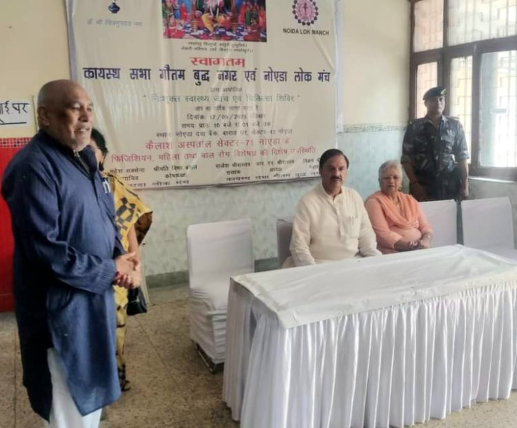नोएडा: कायस्थ सभा गौतम बुद्ध नगर तथा नोएडा लोकमंच द्वारा संयुक्त तत्वाधान में 17 सितंबर रविवार को नोएडा दवा बैंक सेक्टर 12 में एक विशाल चिकित्सा तथा स्वास्थ्य जांच शिविर का आयोजन किया गया। शिविर मे सांसद महेश शर्मा ने दीप प्रज्वलित कर कार्यक्रम प्रारंभ किया और शिविर में आए लोगों के अच्छे स्वास्थ्य के लिए प्रोत्साहित किया। शिविर में पूर्व राज्यसभा सांसद आर. के. सिंहा एवं एस. सी. श्रीवास्तव उपस्थित रहे व शिविर की सफलता के लिए सहयोग दिया।