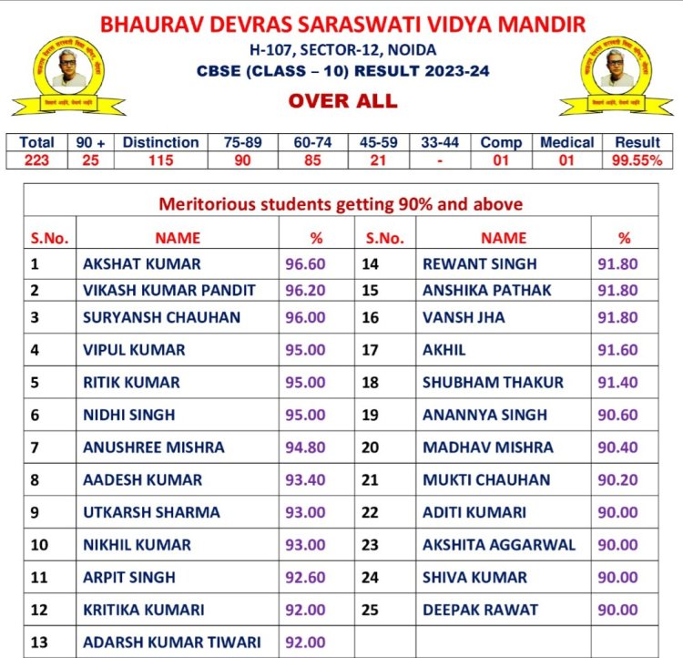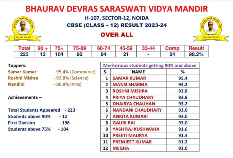 नोएडा। सेक्टर 12 स्थित भाव राव देवरस विद्यालय में 40 मेधावी छात्र-छात्राओ को दसवीं कक्षा एवं 12 वीं कक्षा में 90% से अधिक अंको के साथ उत्तीर्ण छात्रों को सामाजिक कार्यकर्ताओं द्वारा पुरस्कार देकर किया गया सम्मानित ।